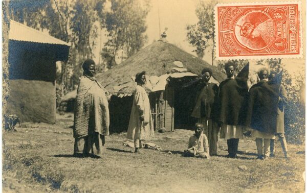 Ethiopia: Postcard of natives in a village addressed to Dire Dawa
