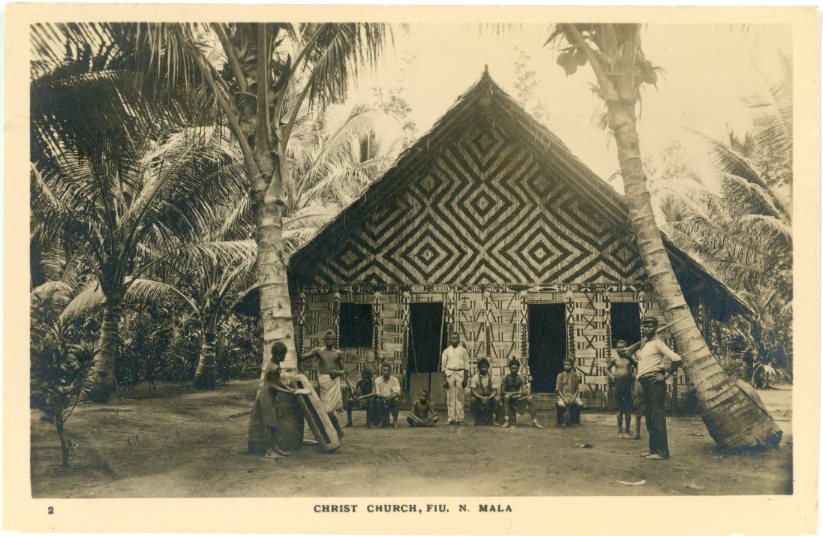 Solomon Islands: Unused photo postcard titled ‘Christ Church’ at Fiu River, Malaita. ed. Melanesian Mission