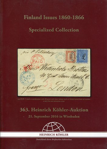 Auction Catalogue: 2016 (21 September). Finland Issues 1860-1866 Specialised Collection, Heinrich Köhler, sale # 363, 133 lots, richly illustrated, no markings.