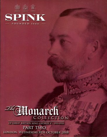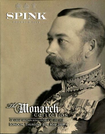 Auction Catalogue: 2008 (8 May) – (8 October). The Monarch Collection of Great Britain King George V 1911-1935, Parts I & II, Spink, sale # 8028 and 8033, 941 + 601 lots, richly illustrated, no markings.