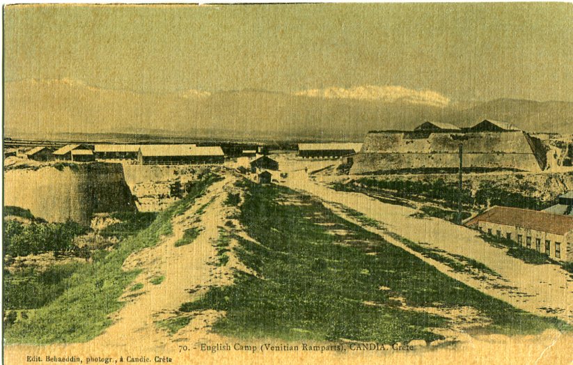 Greece: Unused silk postcard titled ‘English Camp (Venetian Ramps), CANDIA. Crete’. ed. Behaeddin #70