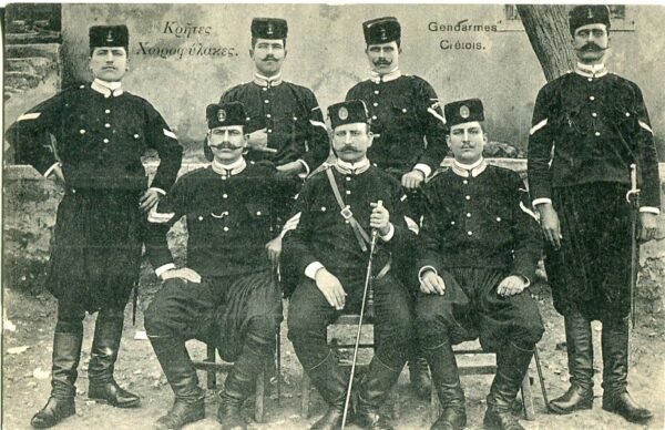 Greece: Unused postcard titled ‘Gendarmes. Cretois’. ed. N. Alikiotis #311