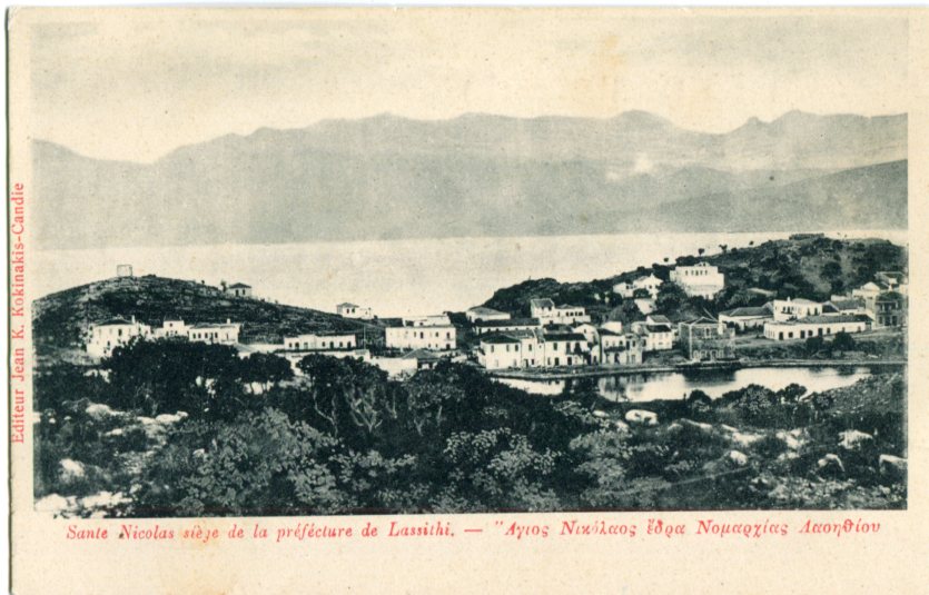 Greece: Unused postcard titled ‘Sante Nicolas siege de la prefecture de Lassithi’. ed. Jean K. Kokinakis