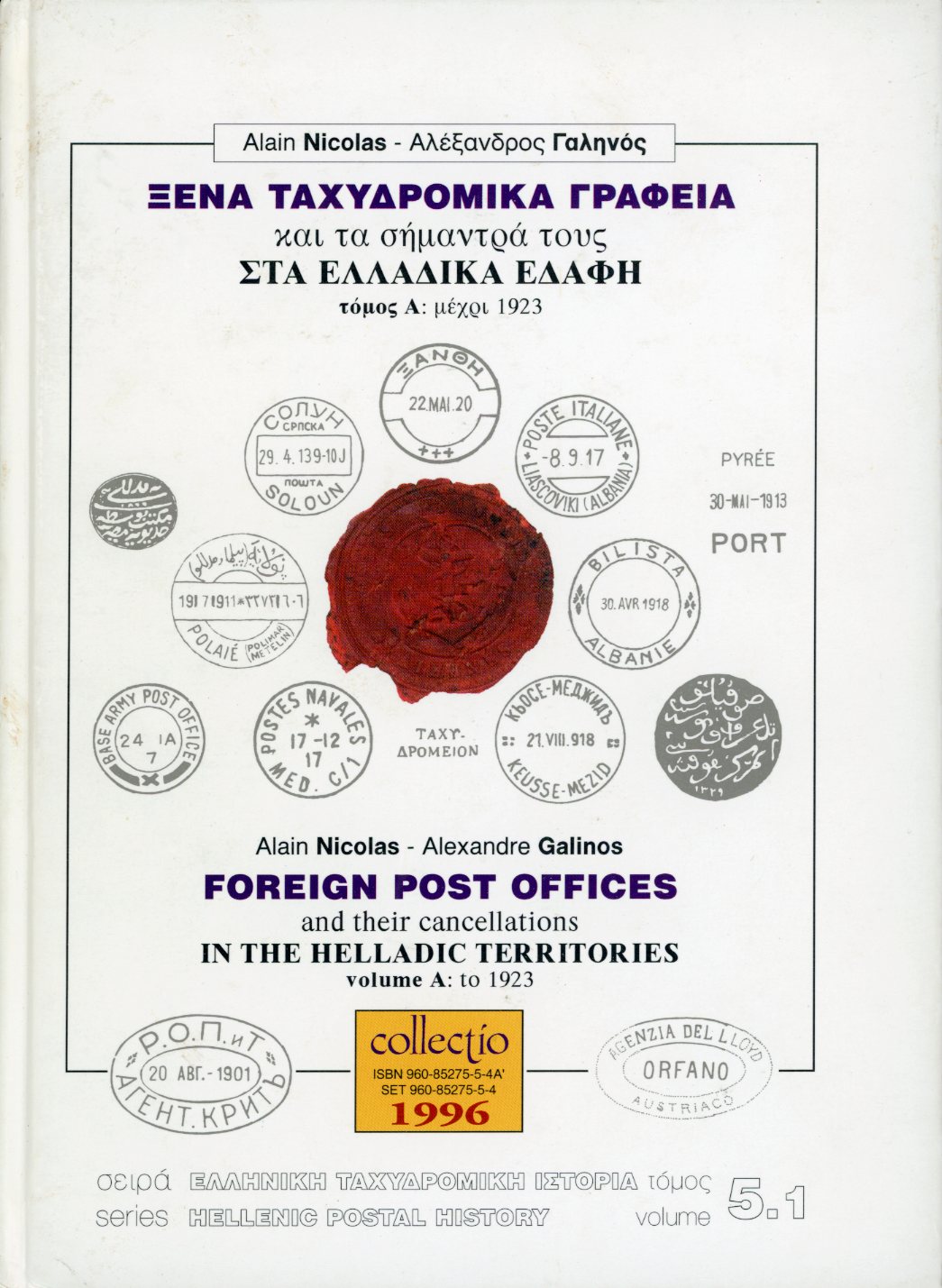 Greece: Foreign Post Offices and their cancellations In The Helladic Territories to 1923 by Alain Nicolas and Alexandre Galinos, Greek & English, Hardcover, 430 pages, published 1996.