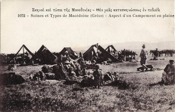 Greece: Unused postcard titled ‘Macedoine – Aspect d’un Campement en plaine’.