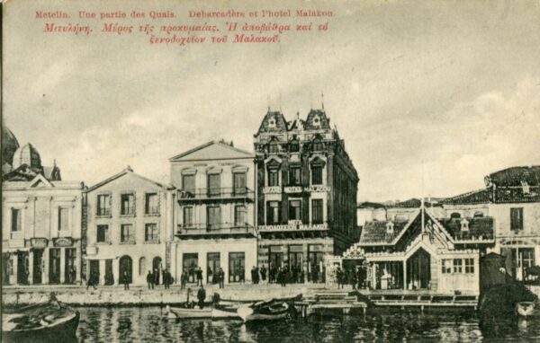 Greece: Unused postcard titled ‘Metelin. Une partie des Quais. Debarcadere et l’hotel Malakou’. ed. Tchivoglou