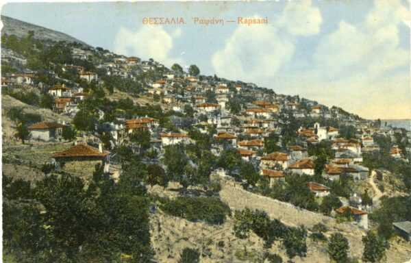 Greece: Postally unused postcard of Rapsani with a long message on reverse dated 1914.