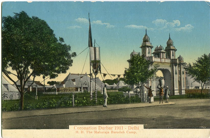India: Unused postcard titled ‘Coronation Durbar 1911 – Delhi. H.H. Maharaja Barodah Camp’. ed. H.A. Mirza