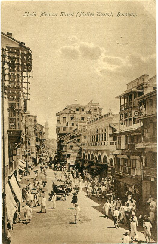 India: Unused postcard titled ‘Sheik Memon Street (Native Town), Bombay’. ed. B. Rigold & Bergmann