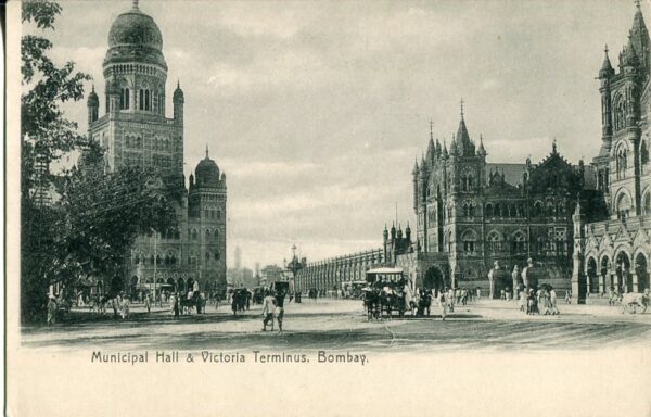 Unused postcard titled ‘Bombay Municipal Hall & Victoria Terminus’.