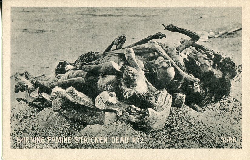 Unused postcard titled ‘Burning Famine Stricken Dead No. 2.