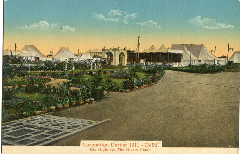 India: Unused postcard titled ‘Coronation Durbar 1911 – Delhi. His Highness The Nizam Camp’. ed. H.A. Mirza