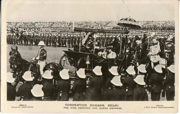 India: Unused photo postcard titled ‘Coronation Durbar, Delhi. The King Emperor and Queen Empress’. ed. Beagles