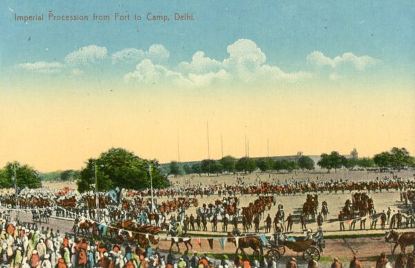 India: Unused postcard titled ‘Imperial Procession from Fort to Camp, Delhi’. ed. Moorli Dhur