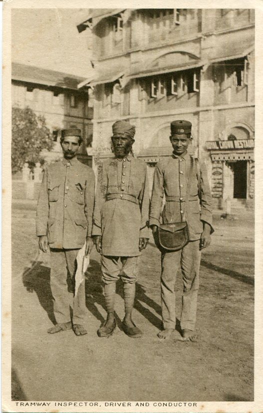 India: Unused postcard titled ‘Tramway Inspector, Driver and Conductor’.