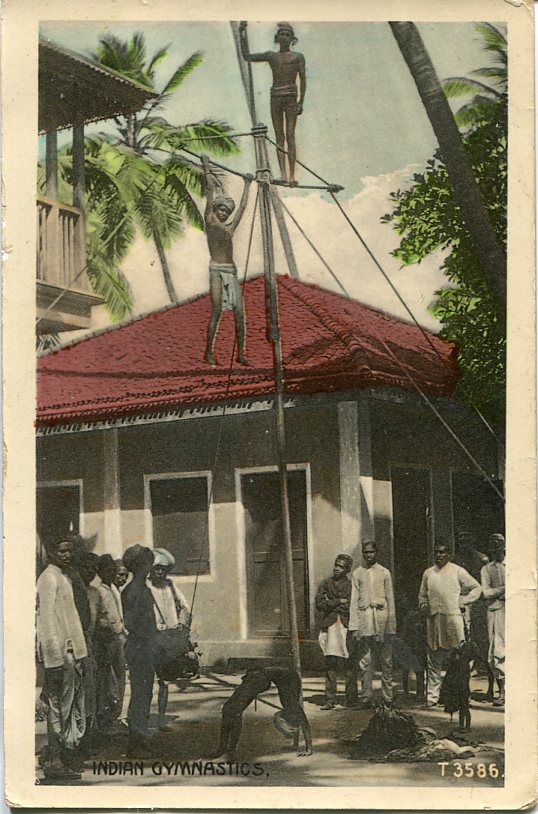 India: Unused postcard titled ‘Indian Gymnastics’. ed. D. Macropolo