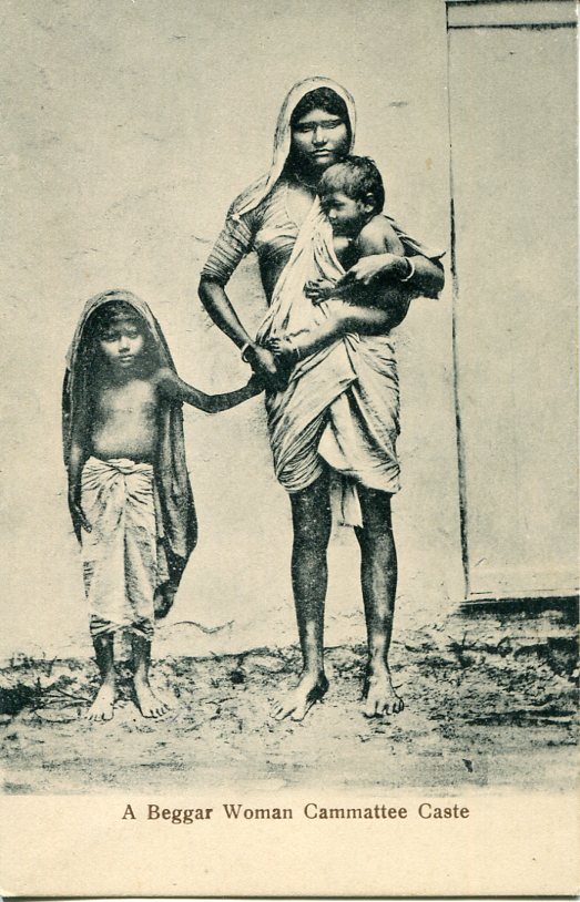 Unused postcard titled ‘A Beggar Woman Cammattee Caste’.
