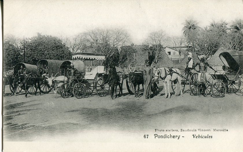 India: Unused postcard titled ‘Pondicherry – Vehicules. photo Baudoin Vincent