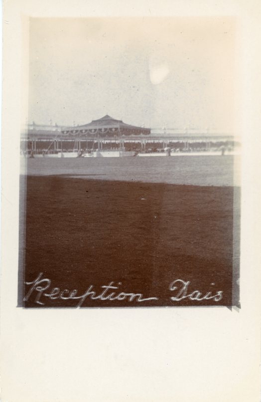 India: Unused photo postcard titled ‘Reception Dais’