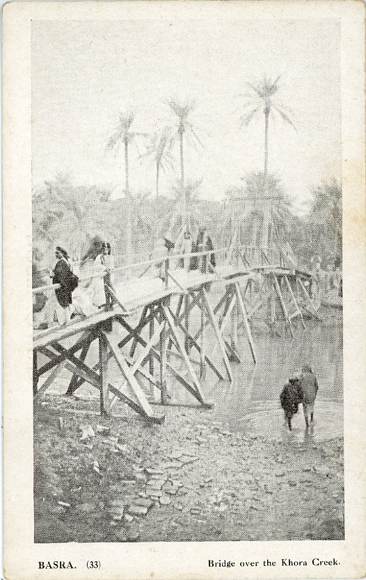 Iraq: Unused postcard issued by Red Cross, Bombay titled ‘Basra. Bridge over the Khora Creek’.