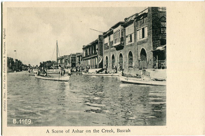 Iraq: Unused postcard titled ‘A Scene of Ashar on the Vreek, Basrah’. ed. Abdulaly Bros. B.1169