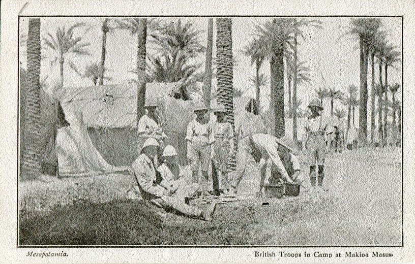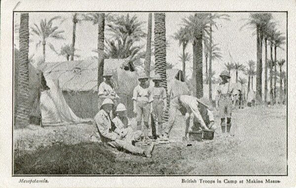Iraq: Unused Army YMCA postcard titled ‘British Troops in Camp at Makina Masus’.