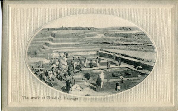 Unused postcard titled ‘The work at Hindiah Barrage’.