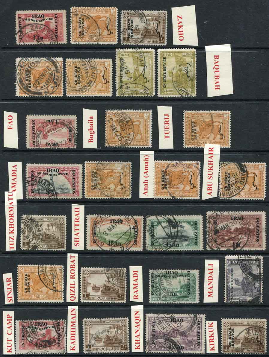 Iraq: Postal cancellations of Iraq collection of approximately 180 stamps, postcard and five cover fronts.