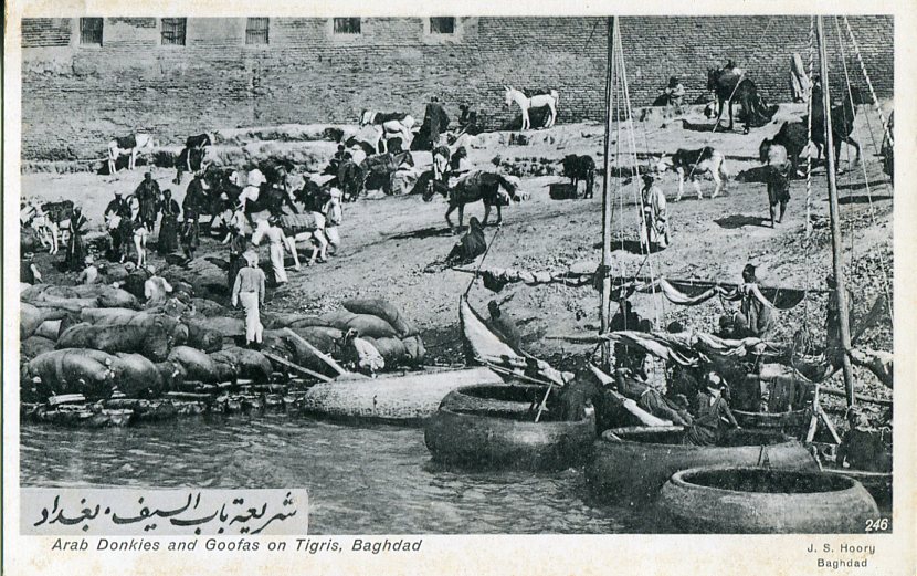 Iraq: Unused photocard titled ‘Arab Donkies and Goofas on Tigris, Baghdad’. ed. J.S. Hoory