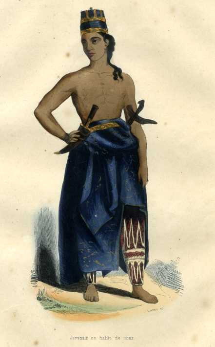 Javanais en habit de cour – Handcoloured gravure from Moeurs, Usages et Costumes de tous les Peuples du Monde by Auguste Wahlen, 1844. 165 x 255mm.