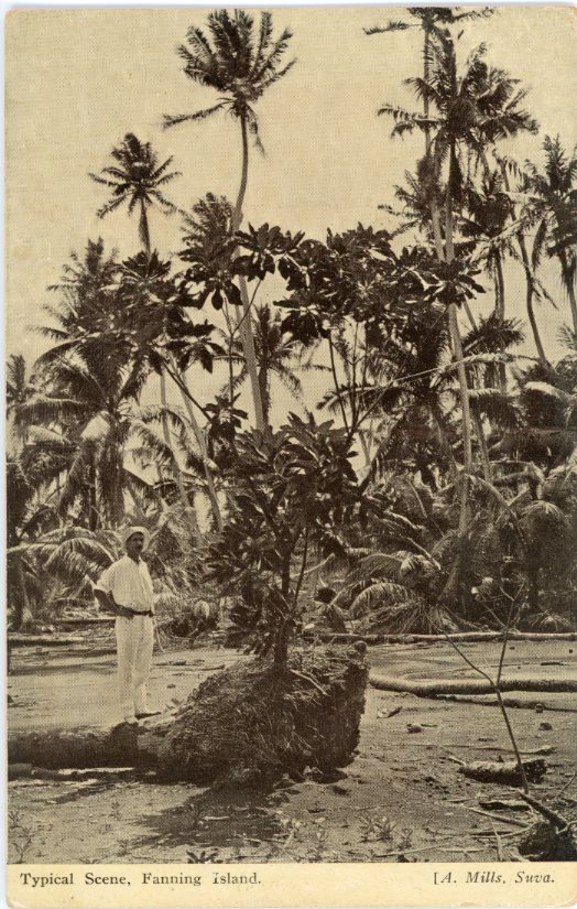 Gilbert & Ellice Islands: Unused photo postcard titled ‘Typical Scene Fanning Island’. ed. A. Mills