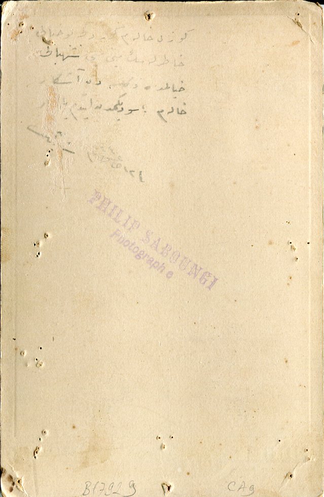 Lebanon: Cabinet photo by Leo Zelinka, Beyrouth, Syrie. Reverse handcachet ‘Philip Saboungi’. 108 x 169mm.