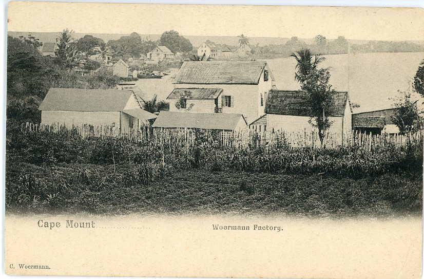 Unused postcard titled ‘Cape Mount … Woermann Factory’.