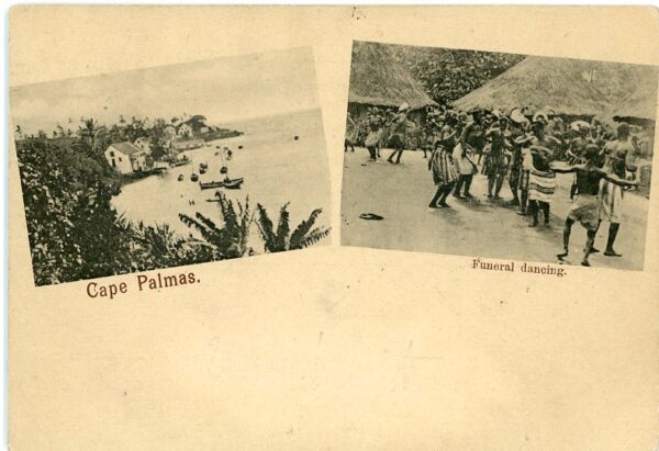Postcard to Germany titled ‘Cape Palmas Funeral dancing’