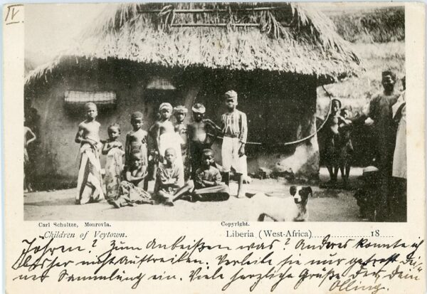 Liberia: Postcard titled ‘Children of Veytown’ to Germany. Stamps removed.