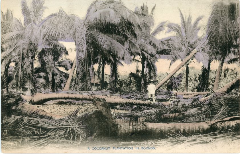 Unused postcard titled ‘A Coconut Plantation in Borneo”