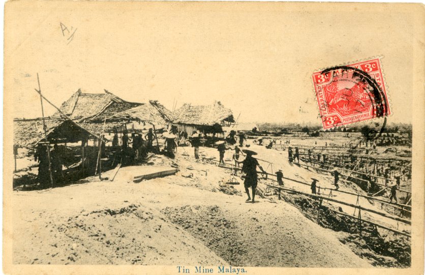 1917 postcard titled ‘Tin Mine Malaya’. Not posted. Reverse blank.