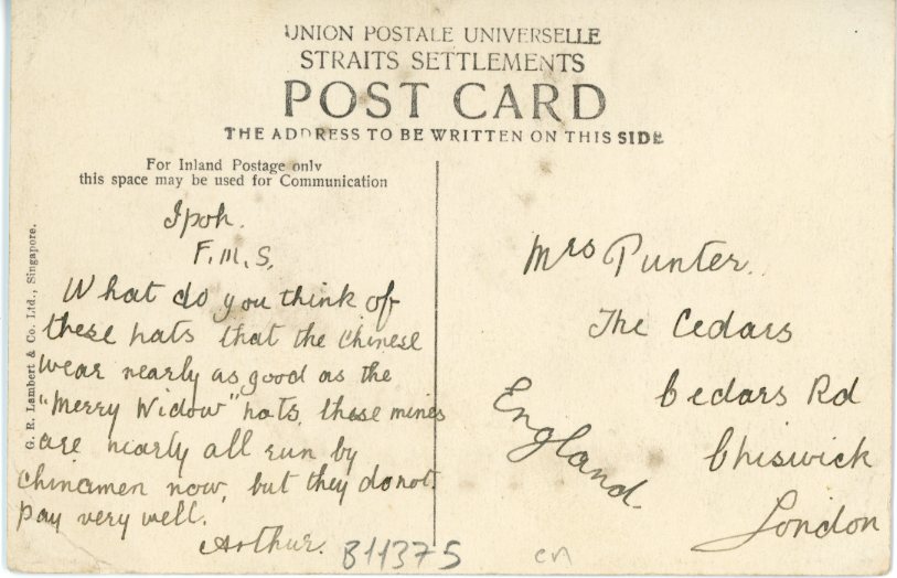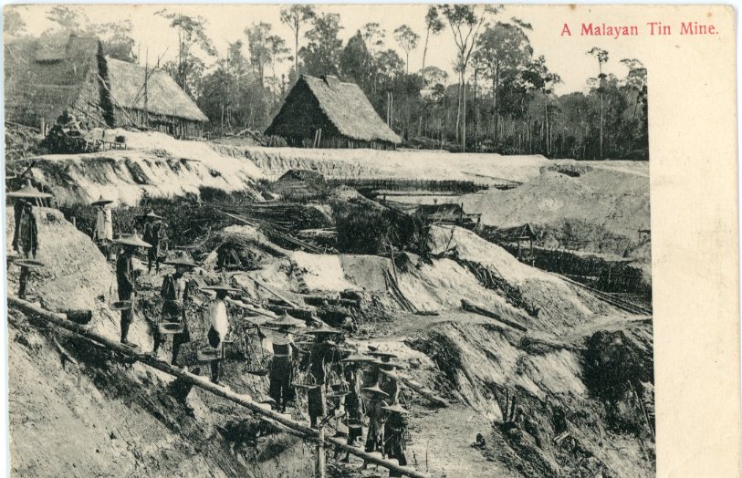 Malaysia: Unused postcard titled ‘A Malayan Tin Mine’. ed. G.R. Lambert, Singapore