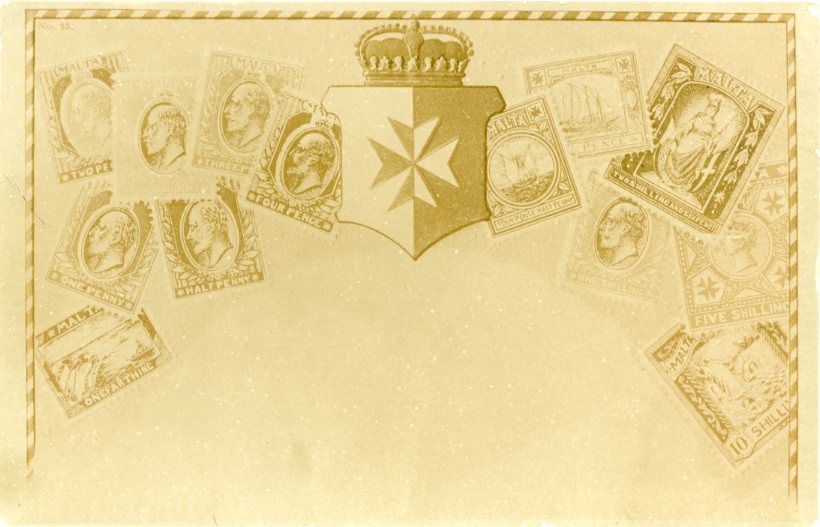 Malta: Unused photo postcard of KEVII stamps and coat of arms’.