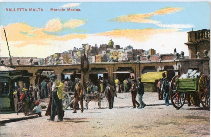 Malta: Unused postcard titled ‘Valletta – Mercato Marina’.
