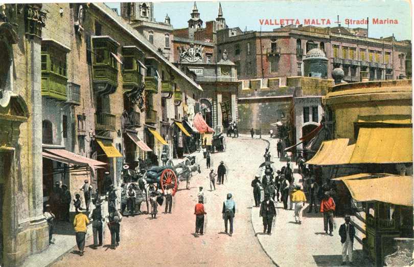 Malta: Unused postcard titled ‘Valletta – Strada Marina’.