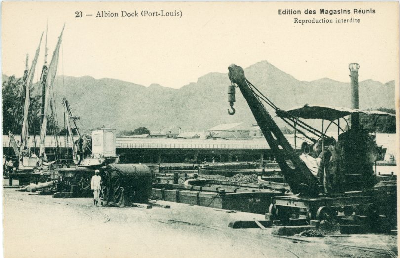 Unused postcard titled ‘Albion Dock (Port-Louis).