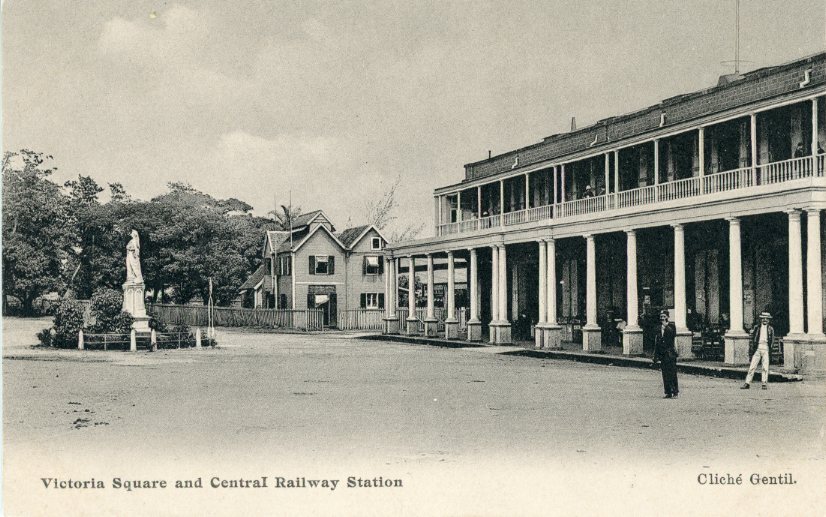 Mauritius: Unused postcard titled ‘Victoria Square and Central Railway Station’.