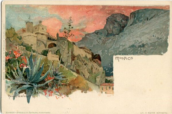 Monaco: Unused Manuel Wielandt watercolour postcard.