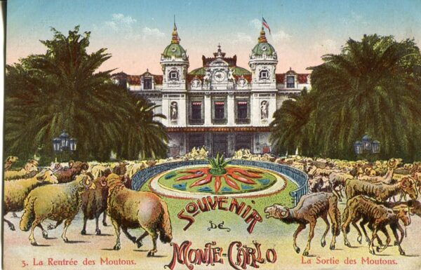 Monaco: Unused postcard titled ‘Monte-Carlo. Le Rentree des Moutons. La Sortie des Moutons’.