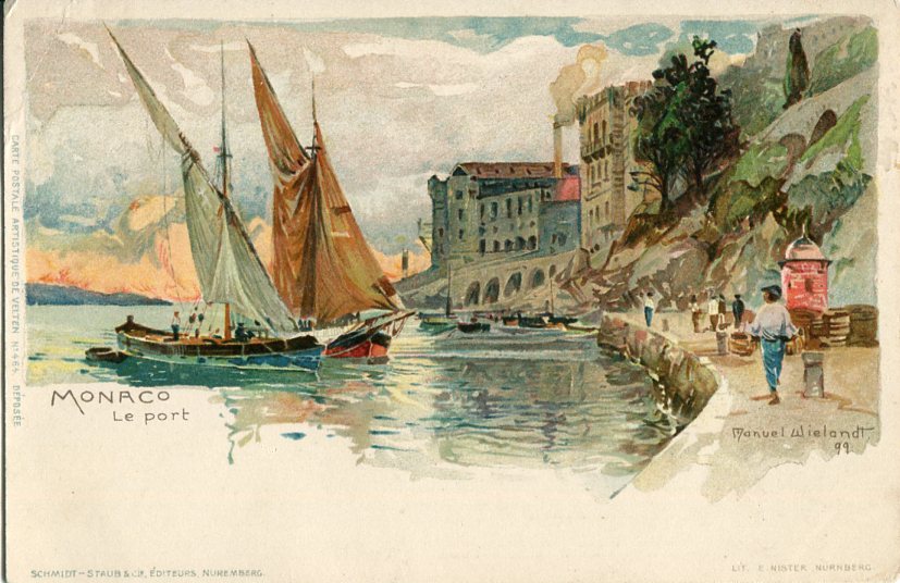 Monaco: Unused Manuel Wielandt watercolour postcard titled ‘Le port’.