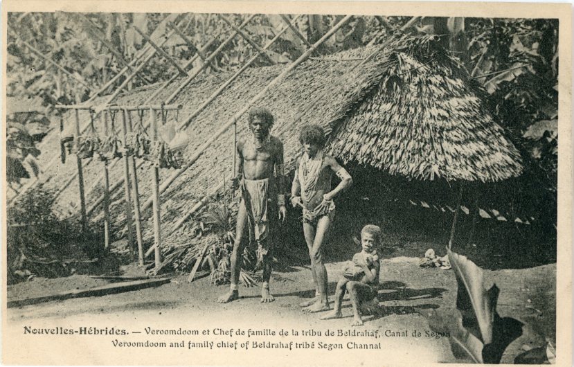 New Hebrides – Vanuatu: Unused postcard titled ‘ Veroomdoom and family chief of Beldrahaf tribe Segon Channal’