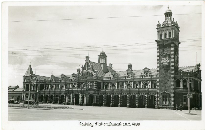 New Zealand: Unused photo postcard titled ‘Railway Station, Dunedin’.