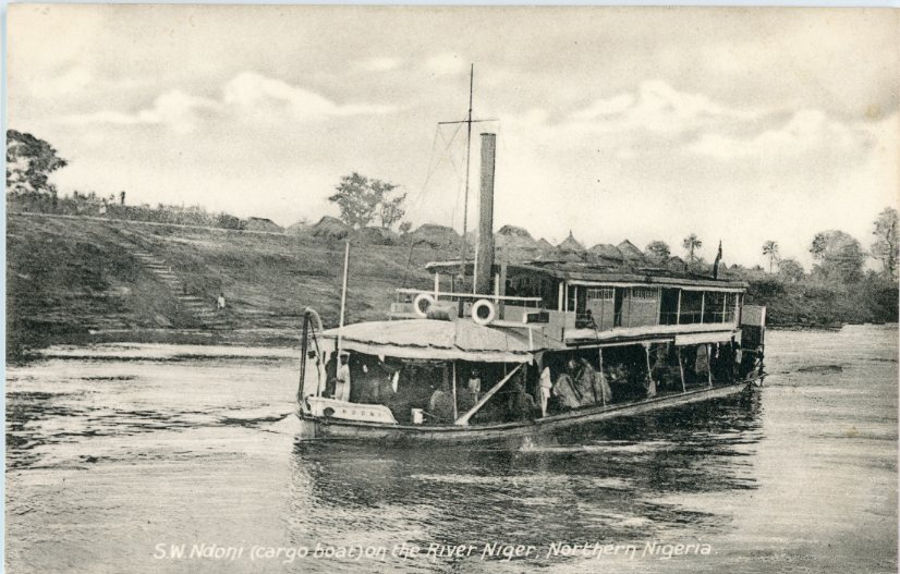 Nigeria: Unused postcard titled ‘SW Ndoni – cargo boat – on the River Niger’. ed. Moyea Series