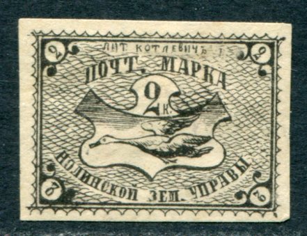 Russia – Zemstvo: 1876 Nolinsk 5k mint o.g. depicting flying duck. Schmidt 19. *